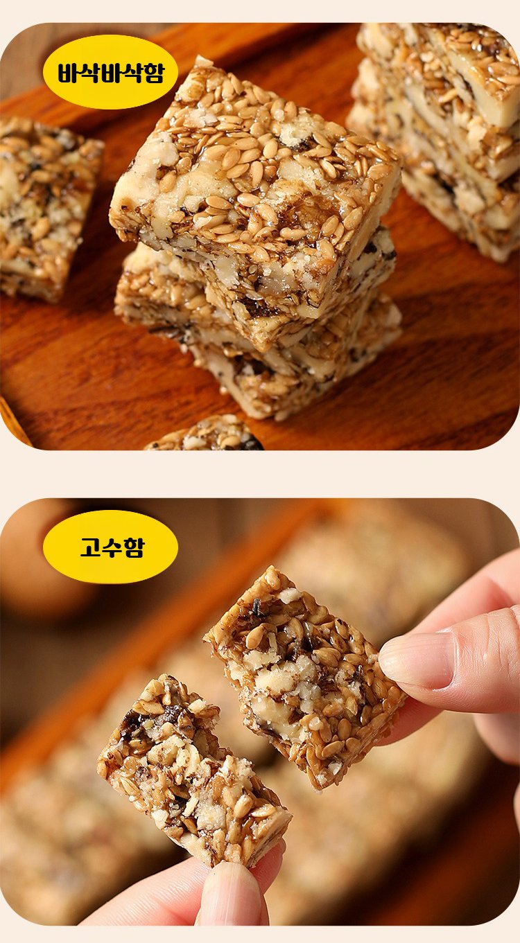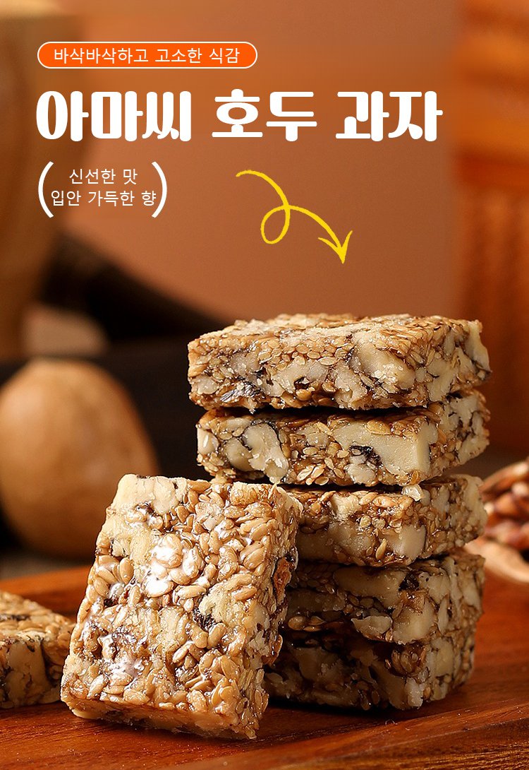 캘리포니아에서 수입된 고급 호두와 캐나다에서 들여온 아마씨를 고온에서 구워 바삭하고 씹는 맛 있는 건강 간식을 만들었어요. 한 봉지에는 오메가-3, 식이섬유, 식물성 단백질 등 인체에 필요한 다양한 영양소가 가득 담겨 있어 온 가족이 함께 즐길 수 있어요!
